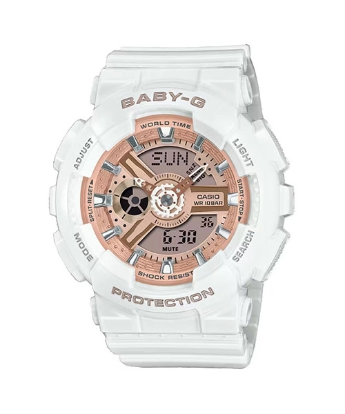 ساعت کاسیو BABY-G مدل BA-110X-7A1DR با طراحی مدرن و ترکیب رنگ سفید و رزگلد، ظاهری لوکس و اسپرت را به نمایش میگذارد. این مدل با الهام از سبک ساعتهای محبوب سری G-SHOCK، همزمان زیبایی و استحکام را برای زندگی پرانرژی بانوان فراهم میکند. جنس بند و قاب از رزین مقاوم و ضد حساسیت بوده و وزن سبک آن راحتی استفاده طولانی را تضمین میکند. با خرید ساعت BABY-G اورجینال در این مدل، هم اصالت برند و هم امکاناتی پیشرفته برای مدیریت زمان را در اختیار خواهید داشت. اگر به دنبال خرید ساعت BABY-G اصل یا خرید ساعت مچی BABY-G زنانه با طرح خاص، کاربردهای ورزشی و روزمره هستید، BA-110X-7A1DR میتواند انتخابی مطمئن و شیک باشد.