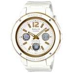 ساعت کاسیو مدل BGA-151-7B از سری BABY-G، انتخابی ایدهآل برای بانوانی است که به دنبال ترکیب دوام، ظاهر شیک و امکانات مدرن هستند. این مدل با بند و قاب رزین سفید و جزئیات طلایی در صفحه، ظاهری بسیار جذاب و زنانه دارد و به آسانی با لباسهای روزمره یا مجلسی ست میشود. نمایش ترکیبی آنالوگ و دیجیتال، امکانات گستردهای مانند آلارم، تایمر و کرنومتر را در یک بسته مقاوم و ضدضربه در اختیار شما قرار میدهد. خرید ساعت BABY-G اورجینال مدل BGA-151-7B تضمینکننده اصالت، کارایی و استایلی خاص برای بانوان خوشسلیقه خواهد بود. با خرید ساعت BABY-G اصل و یا ساعت بیبی جی این مدل، تجربهای لذتبخش و متفاوت از یک ساعت زنانه اسپرت را به دست خواهید آورد.