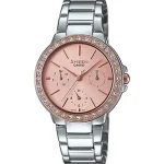 ساعت کاسیو مدل SHE-3069SG-4AUDF از سری محبوب SHEEN انتخابی شیک و حرفه‌ای برای خانم‌هایی است که به دنبال خرید ساعت SHEEN اورجینال با طراحی منحصربه‌فرد و کیفیت بالا هستند. این مدل با بند و قاب استیل دو رنگ نقره‌ای و رزگلد و صفحه صورتی ملایم، ترکیب زیبایی از ظرافت و استحکام را ارائه می‌دهد. طراحی آنالوگ با سه موتور مستقل (نمایشگر تاریخ، روز هفته و ۲۴ ساعته) باعث می‌شود این ساعت علاوه بر ظاهر چشمگیر،کارایی فوق‌العاده‌ای داشته باشد. شیشه معدنی مقاوم در برابر خش، مقاومت در برابر آب تا عمق ۵۰ متر و استفاده از متریال باکیفیت، این مدل را به گزینه برتر برای خرید ساعت مچی شین زنانه یا خرید ساعت های SHEEN تبدیل می‌کند.