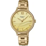 ساعت کاسیو مدل SHE-4550G-9AUDF از مجموعه لوکس و پرفروش SHEEN، انتخاب فوقالعادهای برای خانمهایی است که به دنبال ترکیب زیبایی و کیفیت در خرید ساعت SHEEN اورجینال هستند. این مدل با بند و قاب استیل طلایی براق، ظاهری خیرهکننده و بسیار شیک دارد و برای کسانی که به استایل کلاسیک و رسمی علاقهمندند، یک گزینه ایدهآل محسوب میشود. صفحه طلایی روشن با طراحی ساده و شیک، همراه با نمایشگر تاریخ، ظرافت و کاربرد را در کنار هم قرار میدهد. شیشه معدنی مقاوم و مقاومت در برابر آب تا عمق ۵۰ متر نیز تضمین میکند که این مدل برای استفاده روزمره و حتی مجالس رسمی کاملاً مناسب است. خرید ساعت مچی شین زنانه مدل SHE-4550G-9AUDF انتخابی جذاب برای خانمهای مشکلپسند خواهد بود.