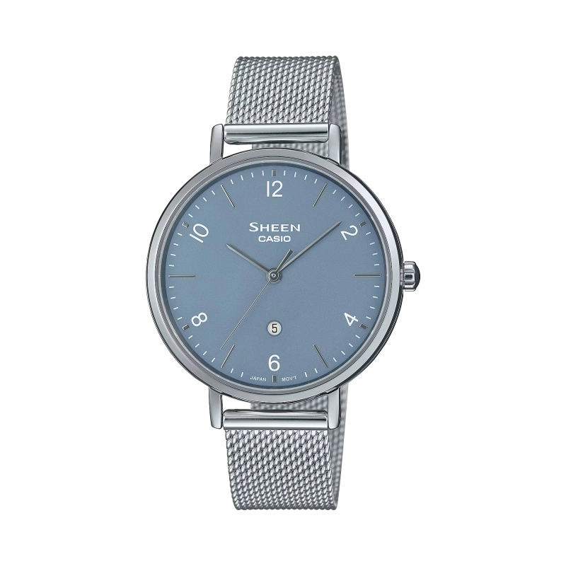 - ظاهر مدرن و درخشان با بند و قاب استیل نقرهای، مناسب برای خرید ساعت SHEEN جنرال و خرید ساعت شین اصل