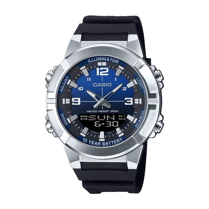 ساعت کاسیو مدل AMW-870A-2AVDF یکی از بهترین انتخابها برای علاقهمندان به خرید ساعت Casio است که به دنبال ترکیب ویژگیهای آنالوگ و دیجیتال در یک ساعت مچی مدرن هستند. این مدل با طراحی اسپرت و شیک، پاسخگوی نیازهای مختلف روزمره و ورزشی بوده و کیفیت ساخت قابل توجهی را به کاربران ارائه میدهد. قاب و بند این ساعت از استیل ضد زنگ ساخته شده است که مقاومت فوقالعادهای در برابر فرسایش دارد و جلوهای خاص به ساعت میبخشد. قابلیت نمایش همزمان زمان به صورت دیجیتال و آنالوگ، کرنومتر، تقویم خودکار، آلارم و مقاومت در برابر آب تا عمق 50 متر از جمله امکاناتی است که این مدل را به انتخابی کاربردی برای خرید ساعت کاسیو اورجینال تبدیل میکند.