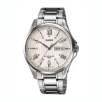 ساعت کاسیو مدل MTP-1384D-7A از سری ساعتهای کلاسیک و پرطرفدار این برند است که با طراحی ساده اما شیک خود، گزینهای بینظیر برای آقایانی است که به دنبال استایل رسمی و باوقار هستند. این مدل با بند و قاب استیل ضدزنگ و کیفیت ساخت عالی، مناسب کسانی است که قصد خرید ساعت Casio با دوام و اصالت را دارند. نمایشگر آنالوگ همراه با نمایش تاریخ و روز، علاوه بر زیبایی ظاهری، عملکردی کاربردی را برای استفاده روزانه و محیطهای رسمی ارائه میکند. شیشه معدنی به کار رفته در این ساعت از صفحه در برابر خط و خش محافظت کرده و مقاومت در برابر آب تا عمق ۵۰ متر، امکان استفاده از آن را در شرایط مختلف زندگی روزمره فراهم میکند. برای دوستداران خرید ساعت کاسیو اورجینال، این مدل یک انتخاب مطمئن است.