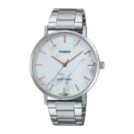 ساعت کاسیو مدل MTP-VT01DM-7AUDF یکی از مدلهای جذاب و کلاسیک برند کاسیو است که همزمان سادگی و ظرافت را با کیفیت عالی ارائه میدهد. این مدل با طراحی آنالوگ و ساختار باریک، ظاهری مینیمال و مدرن دارد و برای افرادی که به دنبال خرید ساعت Casio با سبک ساده و ماندگار هستند، گزینهای بسیار مناسب است. بند و قاب استیل ساعت، دوام و مقاومت بالایی در طول استفاده روزانه به شما میدهد و شیشه معدنی آن باعث جلوگیری از ایجاد خط و خش میشود. این ساعت با وزن سبک و ابعاد متناسب، کاملا روی مچ دست راحت قرار میگیرد و برای تمام موقعیتهای روزمره و حتی رسمی قابل استفاده است. اگر میخواهید یک انتخاب مطمئن برای خرید ساعت کاسیو اورجینال داشته باشید، پیشنهاد ما این مدل است.