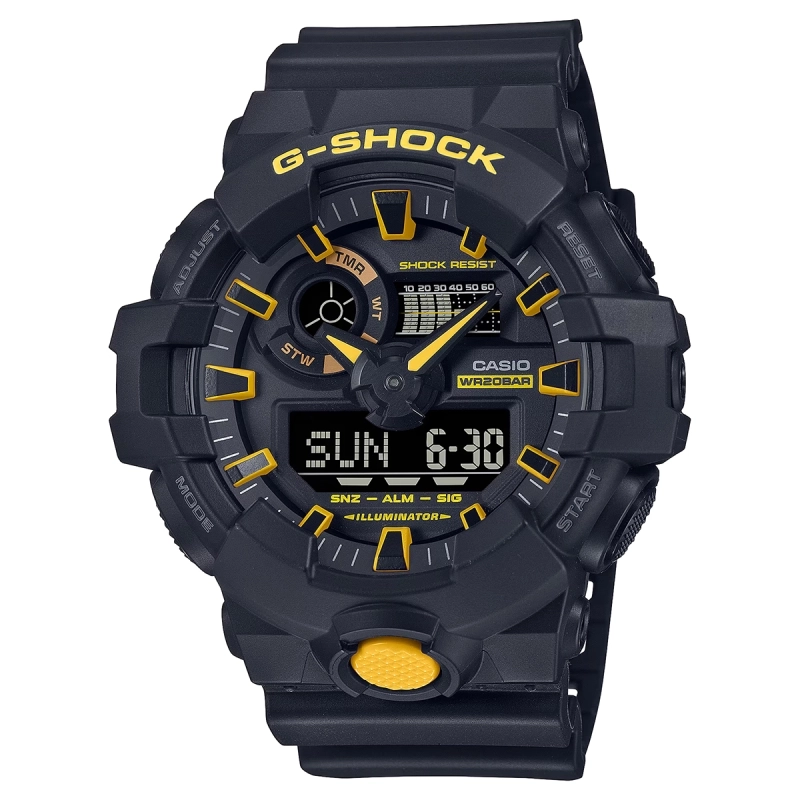 اگر بهدنبال یک ساعت مقاوم، حرفهای و چشمگیر هستید، ساعت کاسیو GA-700CY-1ADR انتخابی فوقالعاده در میان علاقمندان به سری جی شاک محسوب میشود. این مدل نه تنها از طراحی بینظیر بهره میبرد، بلکه دوام بالا و قابلیتهای متنوع آن، هر کاربری را راضی نگه میدارد. ساعت GA-700CY-1ADR مناسب کسانی است که تمایلی به خرید ساعت G-SHOCK اصل دارند و به دنبال سازگاری با شرایط سخت و ظاهر اسپرت هستند. این مدل با ترکیب آنالوگ و دیجیتال، امکانات فوقالعادهای نظیر کرنومتر پیشرفته، تقویم خودکار و آلارم روزانه را در اختیار شما قرار میدهد. همین عوامل باعث شده تا خرید ساعت جی شاک اورجینال و به طور خاص این مدل، در اولویت علاقمندان به ورزش و استایل خیابانی قرار گیرد.