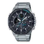 ساعت کاسیو مدل ECB-950DB-1ADF از سری ادیفایس، یکی از مدرن‌ترین و کامل‌ترین انتخاب‌ها برای علاقه‌مندان به خرید ساعت Edifice اصل محسوب می‌شود. این مدل با ترکیب نمایش آنالوگ و دیجیتال، امکانات هوشمند و طراحی اسپرت، نیازهای حرفه‌ای و روزمره شما را به بهترین شکل برطرف می‌کند. ساختار بدنه و بند تمام استیل ضدزنگ این ساعت، علاوه‌بر زیبایی، دوام و مقاومت بالایی را تضمین می‌کند. قابلیت اتصال به گوشی هوشمند از طریق بلوتوث، مدیریت دقیق زمان، کرونوگراف 1/100 ثانیه، تایمر، نمایش ساعت جهانی و تقویم اتوماتیک، این مدل را به یکی از خاص‌ترین گزینه‌ها برای خرید ساعت های Edifice و خرید ساعت ادیفایس اورجینال بدل کرده است. این ساعت با صفحه مشکی و طراحی مدرن خود، انتخابی ممتاز برای مردان خوش‌سلیقه در موقعیت‌های مختلف خواهد بود.