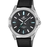 ساعت کاسیو مدل EFR-S107L-1A از سری ادیفایس، پیشنهاد ویژهای برای آقایانی است که به دنبال خرید ساعت Edifice اورجینال با استایلی کلاسیک، بدنه باریک و ظاهری لوکس هستند. ترکیب قاب استیل ضدزنگ نقرهای با بند چرمی مشکی و صفحه مشکی ساده و شکیل، این مدل را به گزینهای جذاب برای خرید ساعت مچی Edifice مردانه تبدیل کرده است. طراحی باریک و وزن سبک، در کنار شیشه سافایر ضدخش و موتور کوارتز ژاپنی دقیق، راحتی و دوام را به همراه میآورد. اگر به دنبال خرید ساعت ادیفایس اصل هستید که بتواند هم در جلسات رسمی و هم استفاده روزانه همراه شما باشد، این مدل انتخابی بینقص است.