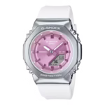 ساعت مچی جیشاک مدل GM-S2110-7A6 ترکیبی از طراحی ظریف زنانه با مقاومت استثنایی G-SHOCK است. این مدل با قاب هشتضلعی از جنس استیل ضدزنگ و بند رزینی سفیدرنگ زیستی طراحی شده و در نگاه اول جلوهای لوکس، درخشان و امروزی دارد. رنگ صفحه در طیف کرم روشن و بژ طراحی شده تا با قاب فلزی نقرهای هماهنگ باشد و حس مدرن و مینیمال به استایل بدهد.