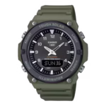 ساعت مچی کاسیو مدل AQ-S820W-3BV از سری AQ-S800 یکی از مدلهای مقاوم و پرطرفدار این برند ژاپنی است که با طراحی اسپرت و انرژی خورشیدی، انتخابی ایدهآل برای افرادی است که دوام و عملکرد را در اولویت قرار میدهند. طراحی این مدل از پنلهای کنترل هواپیما الهام گرفته و ترکیبی از دقت فنی و زیبایی ظاهری را ارائه میدهد. قاب گرد با رنگ تیره، بند رزینی سبز و صفحهی مشکی با شاخصهای سفید، جلوهای مدرن و چشمنواز به ساعت داده است.