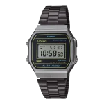 ساعت دیجیتال کلاسیک Casio A168 یکی از محبوب‌ترین و نمادین‌ترین مدل‌های کاسیو با طراحی رترو و نوستالژیک است. این ساعت با بدنه استیل نقره‌ای و صفحه نمایش LCD همراه با نورپردازی پس‌زمینه، ترکیبی از سبک قدیمی و کاربردی مدرن را ارائه می‌دهد.