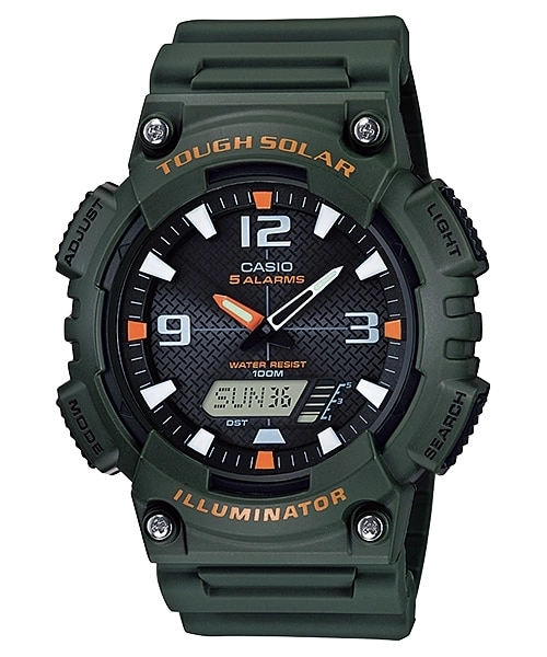 امکانات: شارژ خورشیدی، ۵ آلارم روزانه، تقویم خودکار کامل، کرنومتر، تایمر، نمایش ترکیبی زمان، نور پسزمینه LED