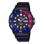 ساعت Casio MRW-230H-1E2V از مجموعه‌ی استاندارد کاسیو، ترکیبی از طراحی دریایی و عملکرد کاربردی است. این مدل با قاب رزینی مقاوم و حلقه‌ی آلومینیومی درخشان روی بزل، جلوه‌ای چشم‌نواز و اسپرت دارد که نور را به زیبایی بازتاب می‌دهد.