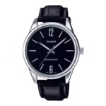 ساعت Casio MTP-V005L-1B یک مدل ساده، کلاسیک و خوش‌استایل از مجموعه‌ی محبوب کاسیو است که با طراحی مینیمال و کاربردی خود، انتخابی عالی برای استفاده روزمره و محیط‌های رسمی محسوب می‌شود. صفحه‌ی مشکی با اعداد خطی سفید، خوانایی بسیار بالایی ایجاد کرده و ظاهری شیک و مردانه به ساعت می‌بخشد.