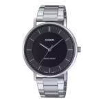 ساعت Casio MTP-VT04D-1E از سری STANDARD با طراحی ساده و صفحهی گود، ترکیبی از ظرافت، کارایی و سادگی را ارائه میدهد. صفحهی مشکی مینیمال در کنار قاب و بند استیل براق، ظاهری مدرن و حرفهای به این ساعت بخشیده که آن را برای استفاده روزمره و محیطهای رسمی کاملاً مناسب میسازد.
